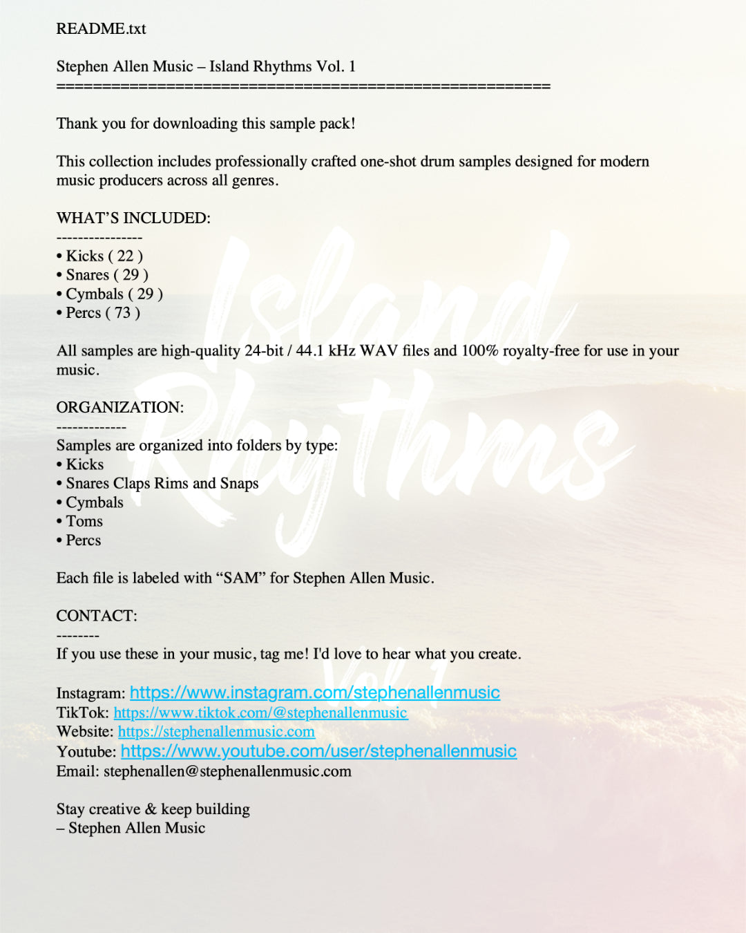 Stephen Allen Music – Island Rhythms Vol. 1 ( One Shot Drum Pack )
